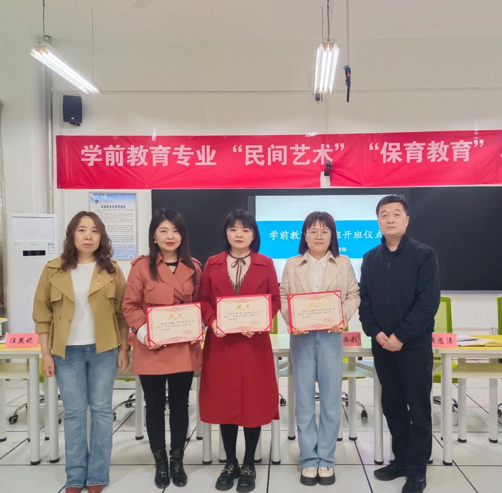 5月10日,教育科学学院举行学前教育专业“民间艺术”“保育教育”卓越班开班仪式。渭南市华县皮影传承人汪艳妮、高新区第一幼儿园副园长高凌云、美术学院专任教师张华、教育科学学院院长李西彩、副院长樊忠涛及学前教育专业全体教师和卓越班学生参加了此次开班仪式。开班仪式由学前教育专业负责人蔡海怡主持。