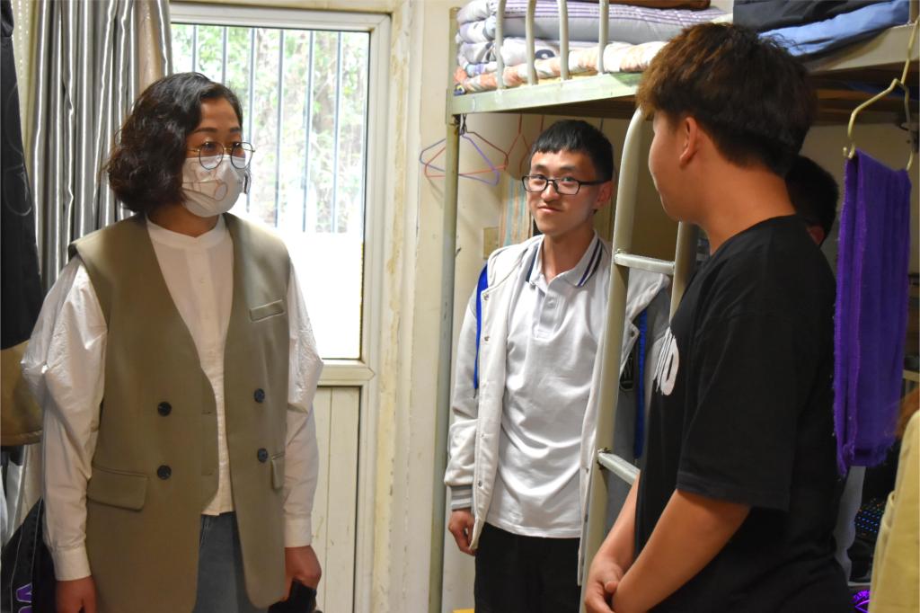 5月11日至12日,学院开展学工队伍进宿舍活动。学院党总支副书记权轻舟带领全体辅导员走进各年级学生宿舍,了解掌握学生思想动态与专业学习、生活等方面情况。权轻舟鼓励学生抓紧后半学期时间,重视专业学习,及时查漏补缺,多参加各类学科竞赛,做好自身健康第一责任人,加强体育锻炼,谨防网络诈骗。她强调,在多元化的社会中要学会明辨是非,要提早进行学业规划、人生规划;在学习上要讲究方法,讲究效率,充分利用资源,提升自我;在日常生活中,要重视体育锻炼,提升身体素质,注意宿舍开窗通风,外出时佩戴好口罩,做好个人健康第一责任人。