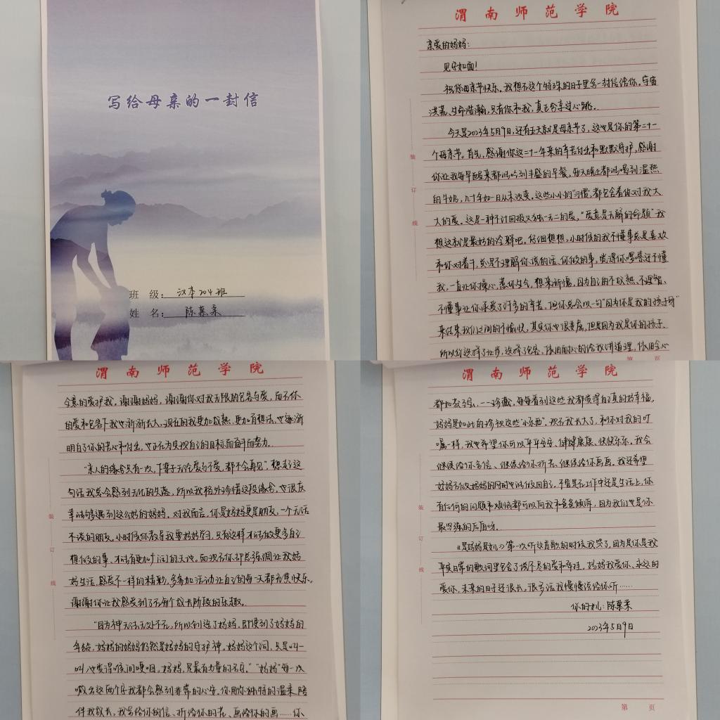 此次活动既丰富了同学们的课余文化生活,同时培养了同学们的感恩意识,进一弘扬了中华民族善孝传统美德。参与学生纷纷表示,通过给母亲写信让他们回想起了从小到大和母亲相处的点点滴滴,让他们更深切地感受到了母爱的伟大和无私。同时表示要以学业上的实际行动来报答母亲的养育之恩。(记者 周雨坤 审核人 李三岗)