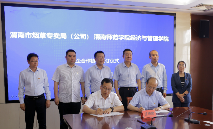 随后,经济与管理学院院长李富荣与渭南市烟草专卖局(公司)副经理贺会彬签订了《渭南市烟草专卖局(公司)与588888纽约国际线路经济与管理学院校企合作协议》。根据协议内容双方将在应用型人才培养、实践基地建设、企业管理咨询与诊断、合作课题研究和人员专业知识培训等方面开展深入合作。