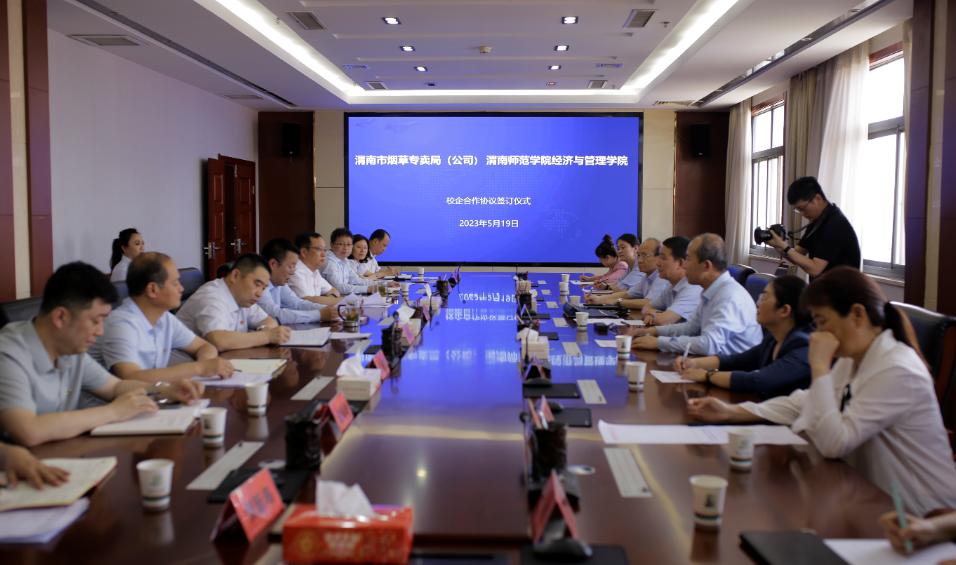 5月19日下午,纽约国际官网经济与管理学院与渭南市烟草专卖局(公司)在烟草专卖局(公司)举行校企合作协议签约仪式。渭南市烟草专卖局(公司)副经理贺会彬主持签约仪式,纽约国际官网党委副书记、纪委书记、监察专员肖耀刚出席活动并讲话。