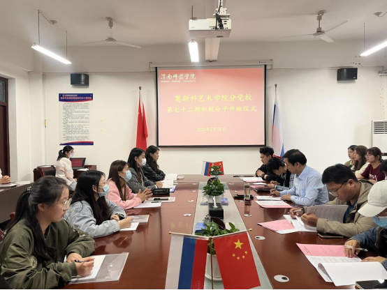 5月25日下午,莫斯科艺术学院分党校举行第七十二期入党积极分子培训班开班仪式,学院党总支书记孟波、副书记叶晓燕、办公室副主任高晶、专职辅导员刘晨扬、师艺园及29名学生入党积极分子参加仪式。会议由高晶主持。
