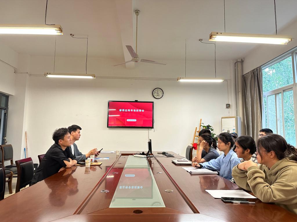 5月31日上午,人文学院在博识楼1318会议室举办睿思达特教育培训学校有限公司专场招聘会,睿思达特教育培训学校有限公司校长王朋波,该院党总支副书记、副院长张晶,就业专干张立夏,辅导员和部分毕业生参与了此次招聘会。