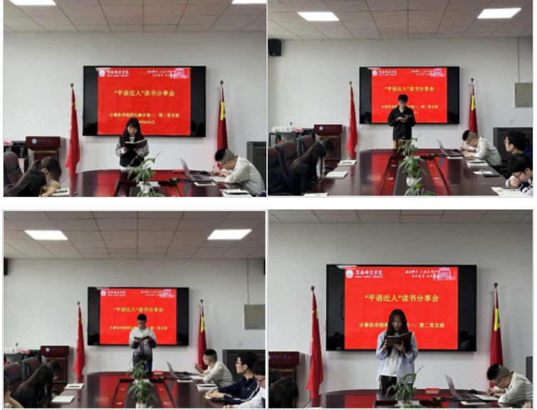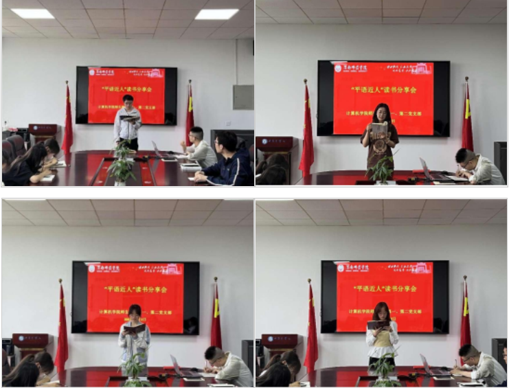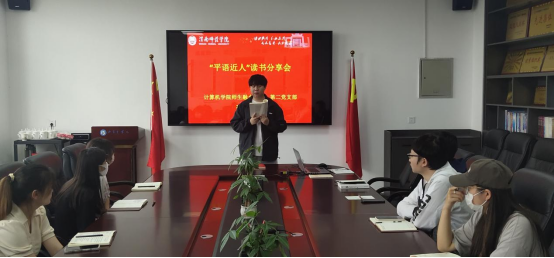 6月2日下午,计算机学院师生融合第一、第二党支部于同心楼5406会议室开展“平语近人”读书分享会,师生融合第一党支部书记李雷玮及支部学生党员代表参会。