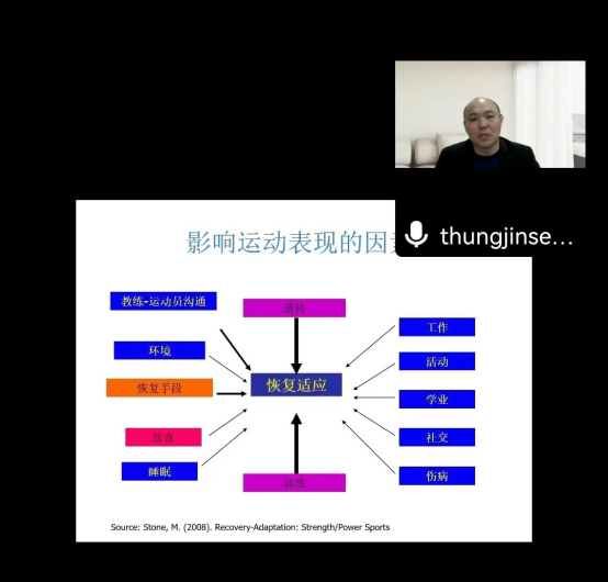 6月7日下午,体育学院邀请马来西亚国家体育科学研究所转化部主任,汤仁圣博士为学院师生进行主题为《冬奥花样滑冰体能训练周期化计划制定:理论与实践》的学术报告。学术报告会由史晓伟老师主持,报告会以线上形式举办,社会体育专业全体学生在5511教室参加线上会议,学院部分中青年教师也参加了线上会议。