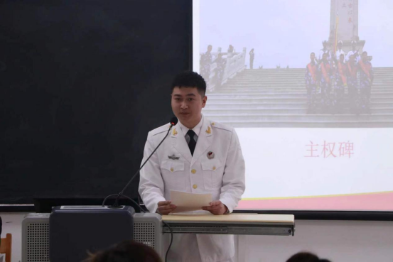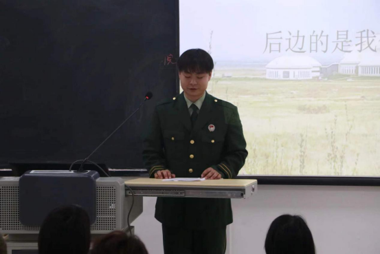 2022级动画专业学生杨博作为有入伍意愿的学生代表宣讲,他表达了自己坚定地从军梦,表示时刻准备着为国家献出自己的力量。