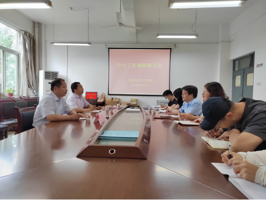 6月19日下午,校党委副书记汪勇、人民武装部部长崔启深入物理与电气工程学院调研指导学生工作。学院院长袁卫、党总支副书记权轻舟、全体辅导员、毕业班学生代表参加会议。