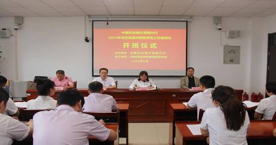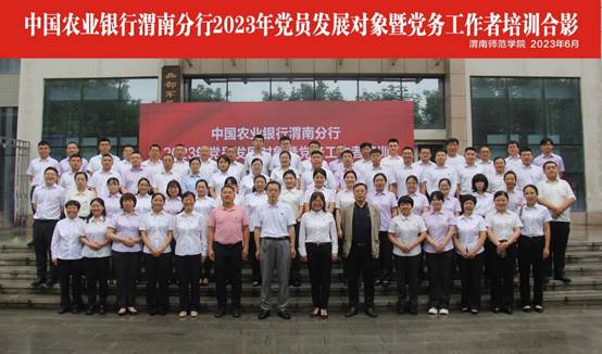 6月18日上午,由中国农业银行渭南分行主办,纽约国际官网承办的中国农业银行渭南分行2023年党员发展对象暨党务工作者培训在纽约国际官网开班,中国农业银行渭南分行党委组织部部长、人力资源部总经理贾娟丽,继续教育学院直属党支部书记周德锋出席,开班仪式由继续教育学院副院长苟鹏军主持。