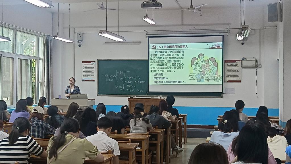6月16日下午,马克思主义学院邀请陕西省教学能手、思政课骨干教师赵亚妮作了题为《上好思政课 当好引路人》的专题报告。思政专业负责人曹立新等教师与百余名学生参加。