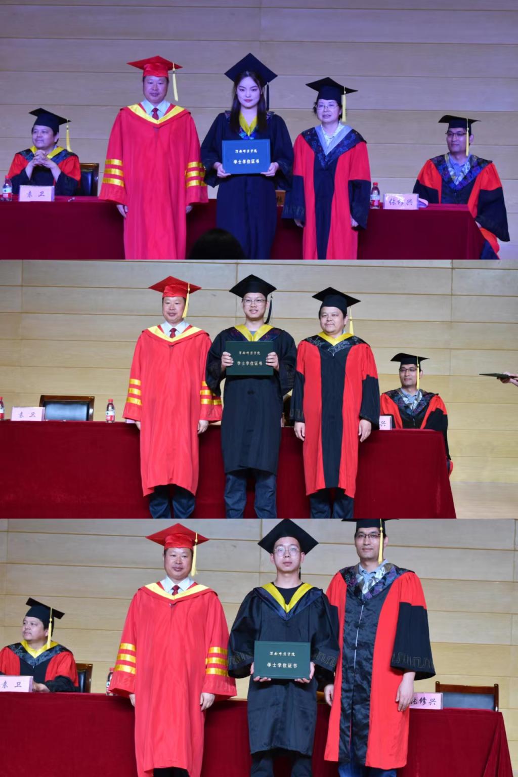 在激昂奋进的音乐声中,汪勇与学院领导一同为2023届毕业生们逐一正冠拨穗、颁授学位证书,并合影留念。现场同时为获奖学生颁发荣誉证书,为2023届毕业生的大学生涯画上了圆满的句号。