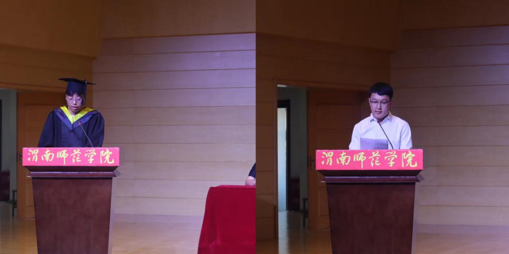 电气191班刘欣瑶代表毕业生对学院的教育栽培、师长的谆谆教诲表示感谢,带大家重温了大学四年的美好时光,表示会将所学所为服务回报社会,书写辉煌壮丽的诗意人生,并勉励在校生要珍惜时光、怀揣热爱、增长才干,实现自我价值。电信201班张恩维代表在校生为学长、学姐送上真挚祝福,表达了感激和不舍之情,承诺将以学长、学姐为标杆,踔厉奋发、勇毅前行、敢于创新,续写新的辉煌篇章。教师代表唐浩分享了自己与学生的师生情谊,向毕业生表达美好祝愿,希望物电学子在未来能勇往直前、大展宏图、施展抱负、绽放青春,成为有理想、敢担当、能吃苦、肯奋斗的栋梁之材。