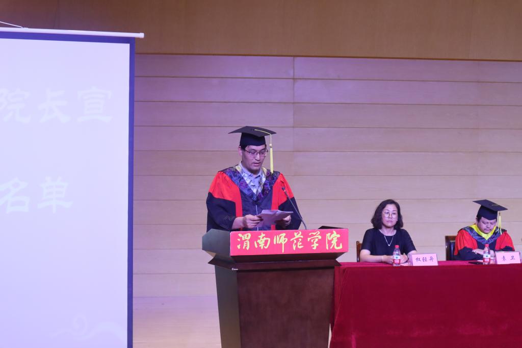 副院长张修兴宣读了《物理与电气工程学院2023届毕业生毕业资格和学位授予资格审查决定》和《物理与电气工程学院2023届优秀毕业生、优秀毕业生学生干部名单》。
