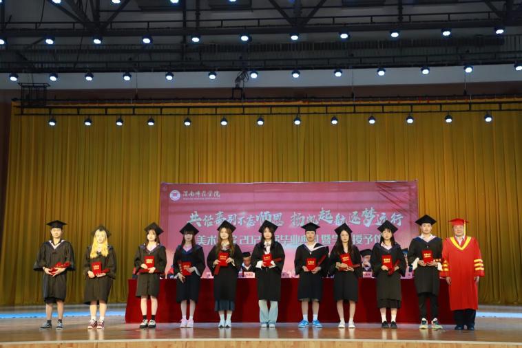 典礼在庄严的国歌声中拉开序幕。副院长石海彬宣读《美术学院2023届毕业生毕业资格审核、学位授予资格审核结果》。副院长刘涌涛宣读《588888纽约国际线路美术学院关于表彰院级优秀毕业生和优秀学生干部的决定》《588888纽约国际线路美术学院关于表彰团总支学生分会优秀学生干事的决定》。