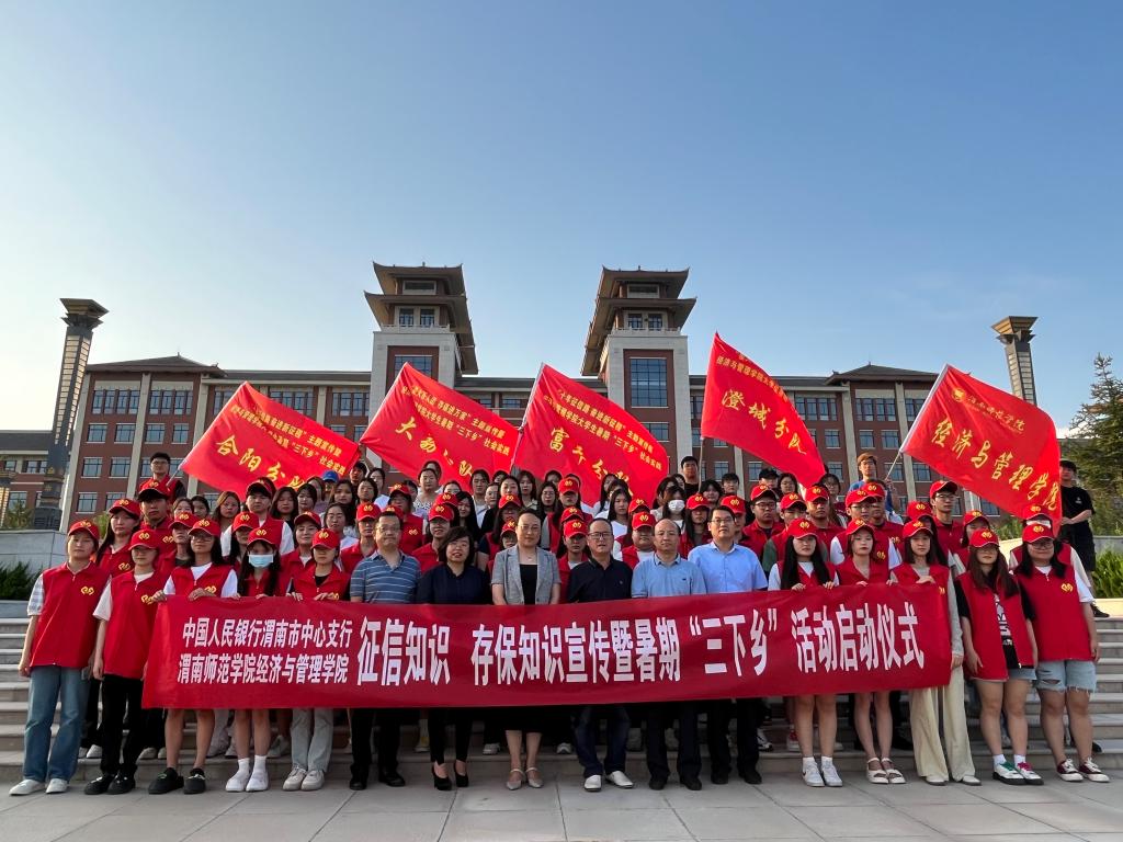 6月26日,经济与管理学院和中国人民银行渭南中心支行在富平校区举行征信知识、存保知识宣讲暨暑期“三下乡”社会实践启动仪式。仪式邀请了中国人民银行渭南市中心支行副行长王玉冰、征信科科长康振勇、货币信贷科科长马少辉出席。经济与管理学院党总支书记魏光民,院长李富荣,副院长屈晓娟及三下乡实践队队员参加启动仪式。启动仪式由经济与管理学院辅导员刘婉婷主持。