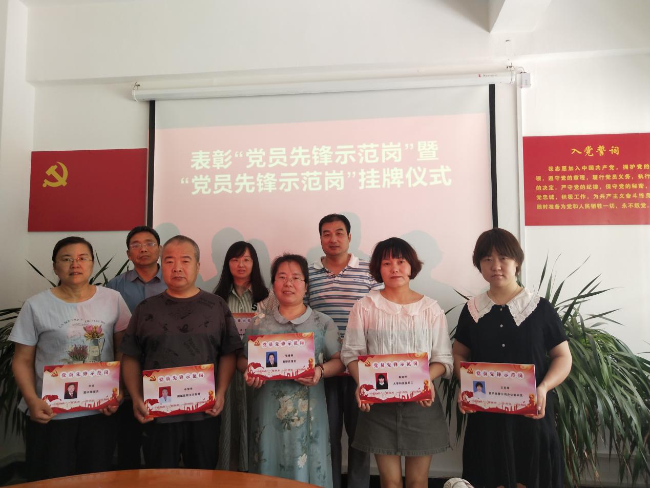 7月5日上午,附属单位党总支举办“党员先锋示范岗”授牌仪式。总支委员、各支部负责人、党务工作者、表彰对象参加会议。