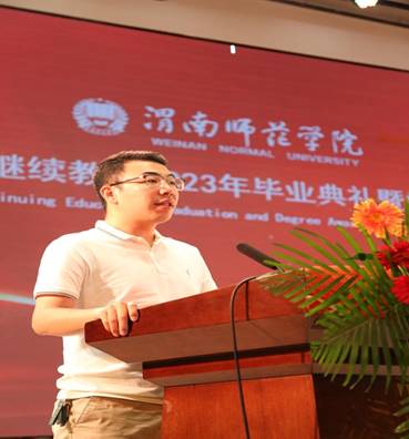 毕业生代表赵春亮同学表达了对学校、学院、老师的敬意和感谢,并祝愿学校再创辉煌,毕业生们前程似锦,未来可期。在校生代表袁子麒祝愿2023年毕业生前程似锦,并表示自己会以优秀的毕业生为榜样,不懈奋斗。