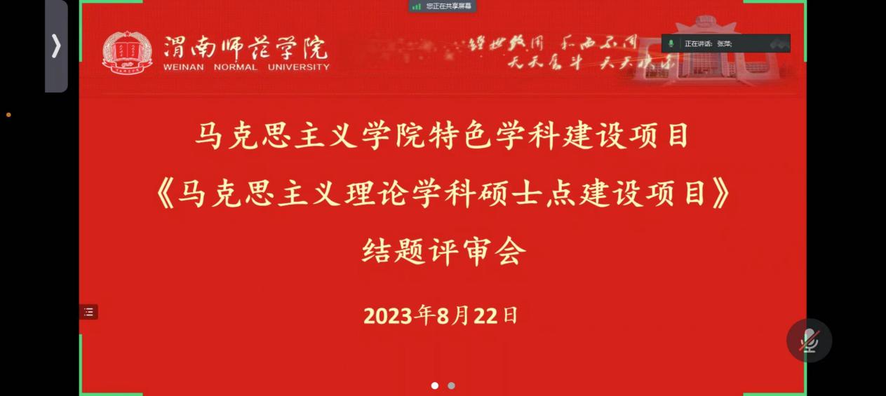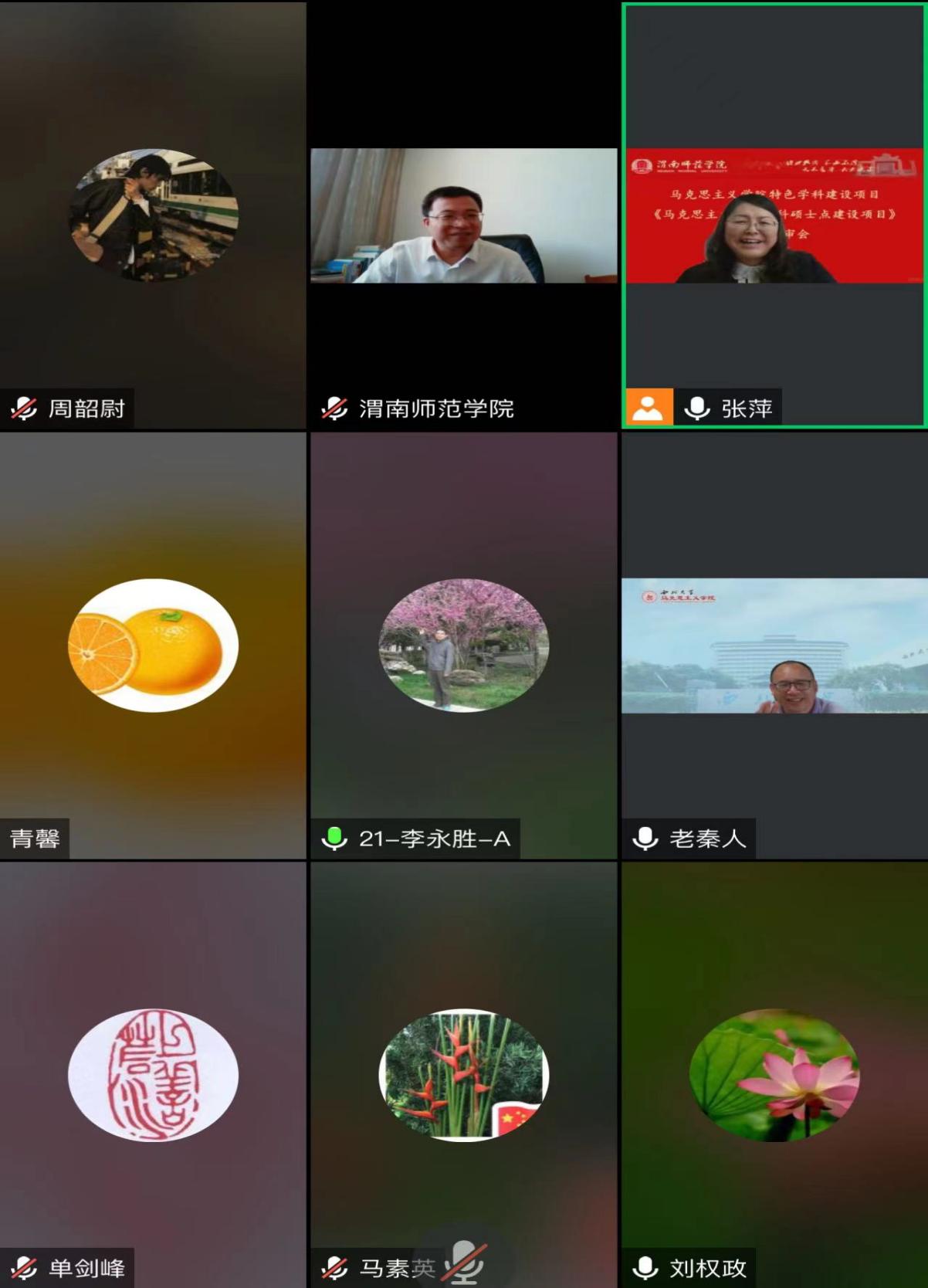 8月22日上午,马克思主义学院特色学科建设项目结题评审会暨马克思主义理论硕士专业学位授权点培育项目论证指导会通过腾讯会议顺利召开,参加评审的校外专家有西北大学马克思主义学院院长何博教授、西安交通大学马克思主义原理研究所所长李永胜教授、西藏民族大学马克思主义学院副院长刘权政教授,校内专家为计算机学院杨方琦副教授和经济与管理学院马素英教授等,马克思主义学院副院长单剑峰及部分青年教师参加会议,会议由马克思主义学院院长张萍教授主持。