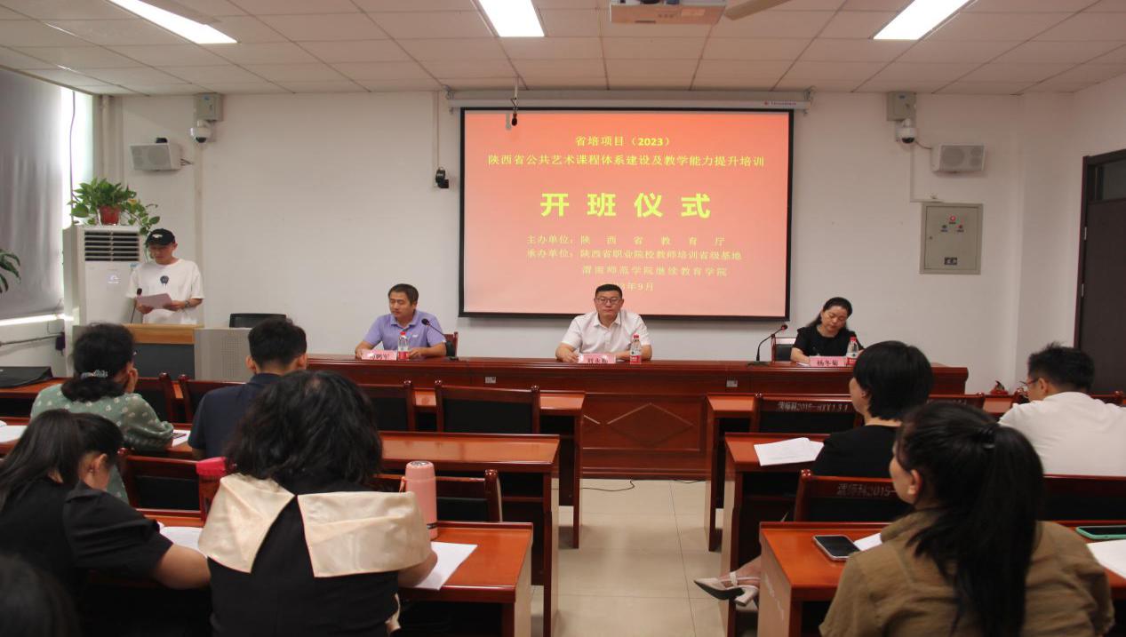 9月8日上午,由陕西省教育厅主办,588888纽约国际线路承办的陕西省2023年职业院校教师素质提高计划省培项目(公共艺术课程体系建设及教学能力提升培训)在纽约国际官网开班。继续教育学院院长刘永勤,项目首席专家杨冬菊教授以及省内各地区的近50名中等职业学校公共艺术课程专业教师出席开班仪式。开班仪式由继续教育学院副院长苟鹏军主持。