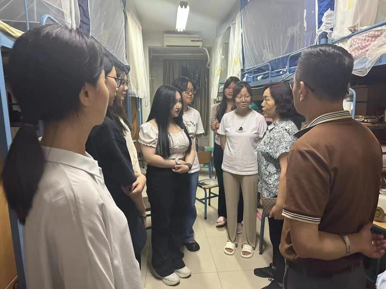 9月9日晚,学校党委委员、副校长常青林、数学与统计学院院长陈斌、党总支副书记张菊梅、副院长赵教练、辅导员以及班主任一同前往新生宿舍了关心慰问刚入学的2023级新生,了解其思想、学习、生活等情况。