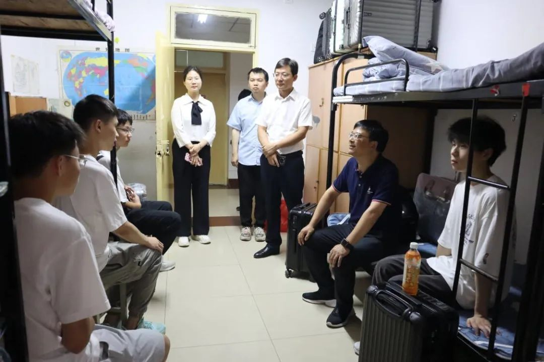 走访过程中,老师们与同学们进行亲切互动交流,详细询问了同学们的家庭情况和对学校环境的适应情况。常青林校长亲切叮嘱新生,初入校园要提高安全防范意识,坚决抵制各类推销和宗教活动,遵守校园管理规定,并对新生们未来的成长给予了殷切期望。小到生活起居,大到人生理想,每个话题都拉近了双方距离。