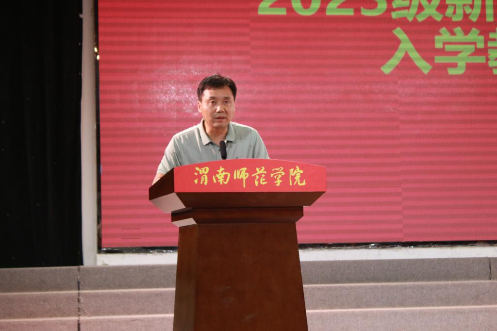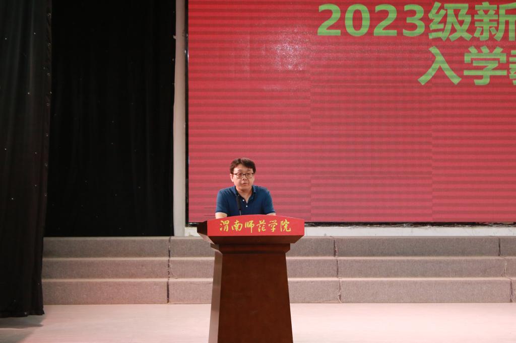 刘展晴从培养目标、专业设置、学业预警、学生考研、就业前景等方面给新生介绍了学院的基本情况。他寄语新生“盛年不重来,一日难再晨,及时当勉励,岁月不待人”,希望同学们珍惜校园时光,刻苦学习,钻研学业。