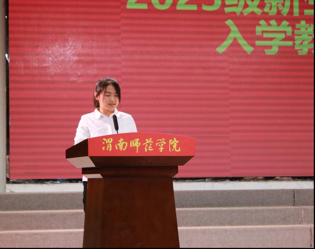 付新教授作为学院教师代表发言,她表示,将秉承爱岗敬业的信念,真诚关爱每一位同学,不断提高教学能力,承担起教书育人、立德树人的责任,她勉励同学们要有坚韧不拔的毅力,要不断夯实自己的知识基础,明确目标,勤奋坚持。希望同学们肩负起时代责任,认真规划大学生活,努力练好人生和事业的基本功。