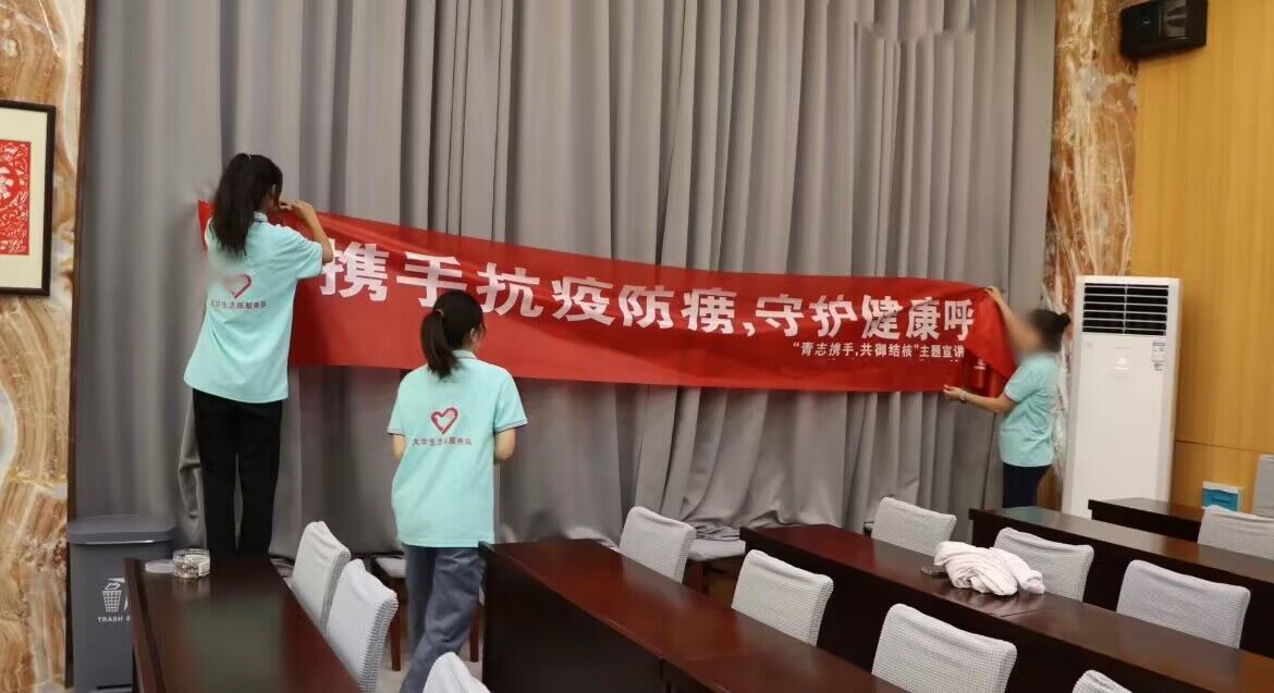 高材211 班王雪婵等学生深入社区积极宣传预防和控制肺结核的相关知识,解读肺结核的误区和谣言,提醒高危人群定期进行结核菌素试验或胸部X光检查,以便及早发现和治疗。