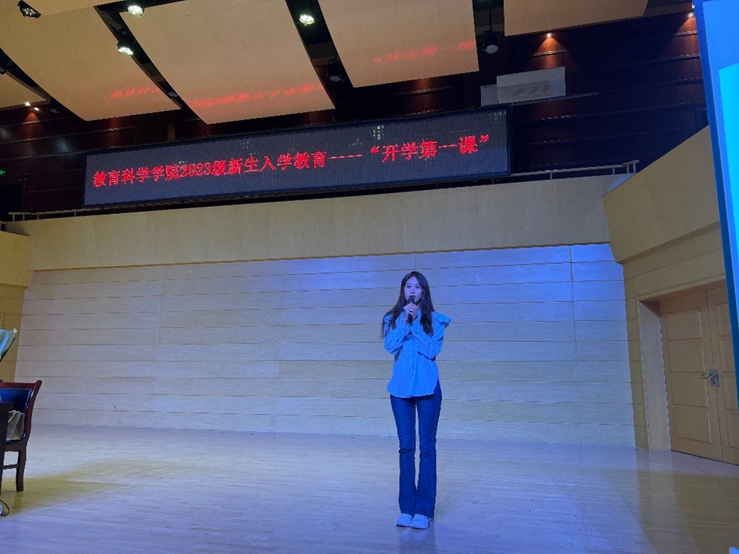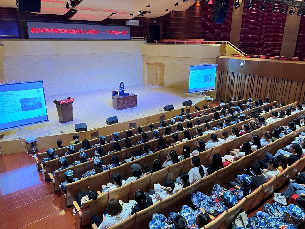“三寸粉笔,三尺讲台系国运;一颗丹心,一声秉烛铸民魂。”教育科学学院2023级新生入学教育暨开学第一课的圆满举办,使教科学子充分认识到师范生的初心与使命、责任与担当,在未来生活中以坚定不移的理想信念、矢志不渝的奋斗精神,奋力书写更美的青春画卷!(通讯员 崔娟 审核人 李西彩)