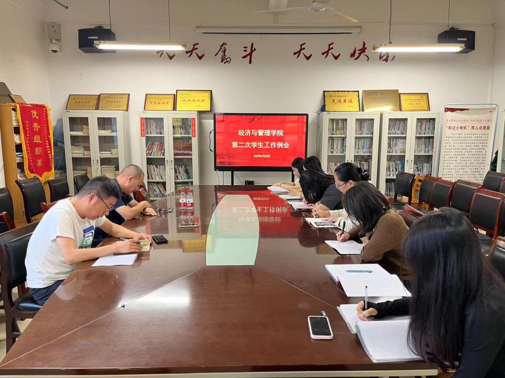 9月20日上午,经济与管理学院召开本学期第二次学生工作例会。学院党总支书记魏光民、副书记谢稷光及全体辅导员参加了会议,会议由谢稷光主持。