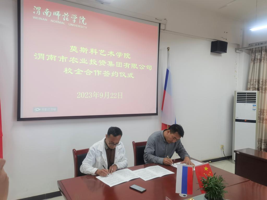 9月22日上午,莫斯科艺术学院与渭南市农业投资集团有限公司,共同商榷产教研融合创新实践基地事宜,签订了双方合作协议书并进行了授牌仪式。参加签约仪式会议的有莫斯科艺术学院副院长梁卫民、高红菊,渭南农投乡村振兴产业开发有限公司总经理侯坤以及双方相关人员。
