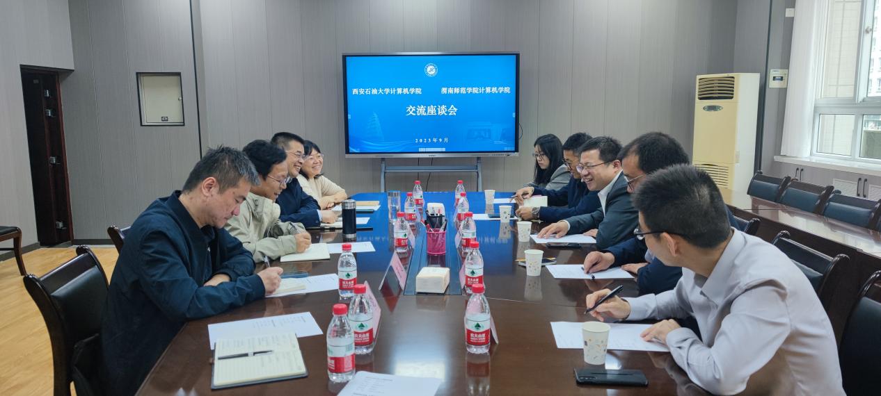 为了进一步推进计算机学院和西安石油大学计算机学院硕士研究生联合培养工作,9月26日,计算机学院院长杨方琦、副院长哈渭涛、李云飞及学院学工办主任李雷玮、教学秘书张莹赴西安石油大学计算机学院进行学习交流。西安石油大学计算机学院党委书记庞秉谦、院长王魁生等学院党政领导班子出席了交流活动。