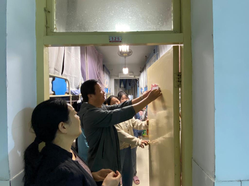 9月28日上午,由学院党总支书记孙永秀带队,党总支副书记刘龙飞、党务秘书冯雨、学工办主任曹乐一起前往学生寝室举行挂牌仪式。