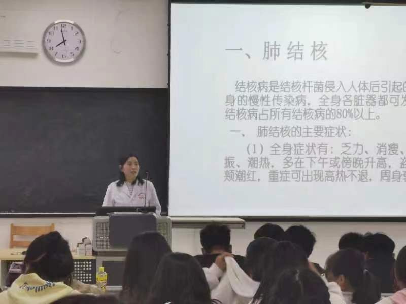 此次专题讲座的主讲人是富平县妇女儿童医院妇产科主任张艳和附属医院副院长王新英两位老师。首先,张艳结合数据、案例、图片等多种形式,向同学们详细讲解了艾滋病、梅毒、乙肝的概述、流行病学、临床表现、治疗和预后等知识。王新英重点讲解了肺结核、新冠肺炎及秋冬季常见传染病的相关知识。富平校区三个学院150余名2023级新生代表参加了此次讲座活动。