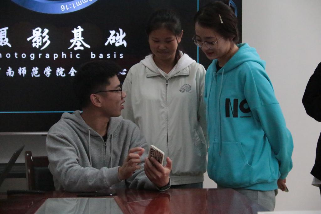 在理论知识讲完之后,各二级学院新媒体部门成员展示各项活动拍摄的照片,李俊杰老师悉心地指出了照片中存在的问题,为同学们答疑解惑。