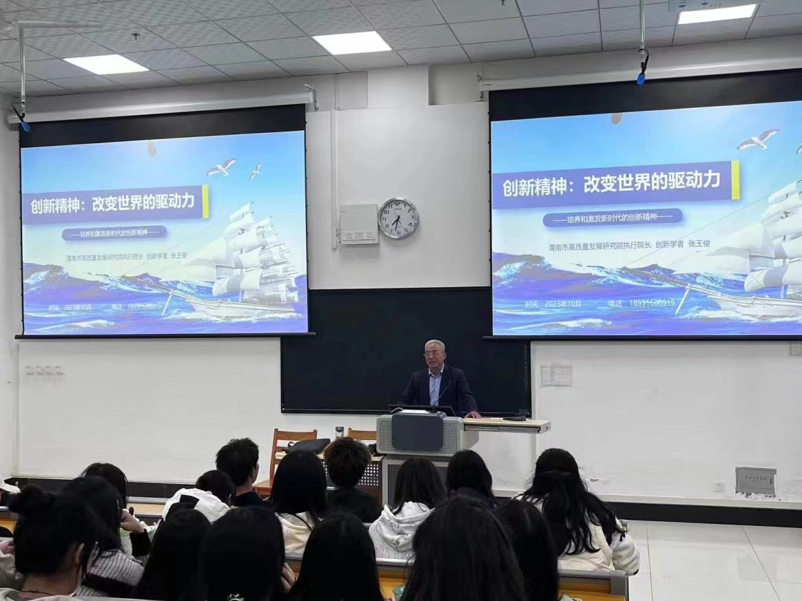 10月25日,经济与管理学院邀请渭南市高质量发展研究院执行院长张王俊,在富平校区138教室,为2023级新生作《创新精神:改变世界的驱动力》的报告。报告会由经济与管理学院院长李富荣主持。