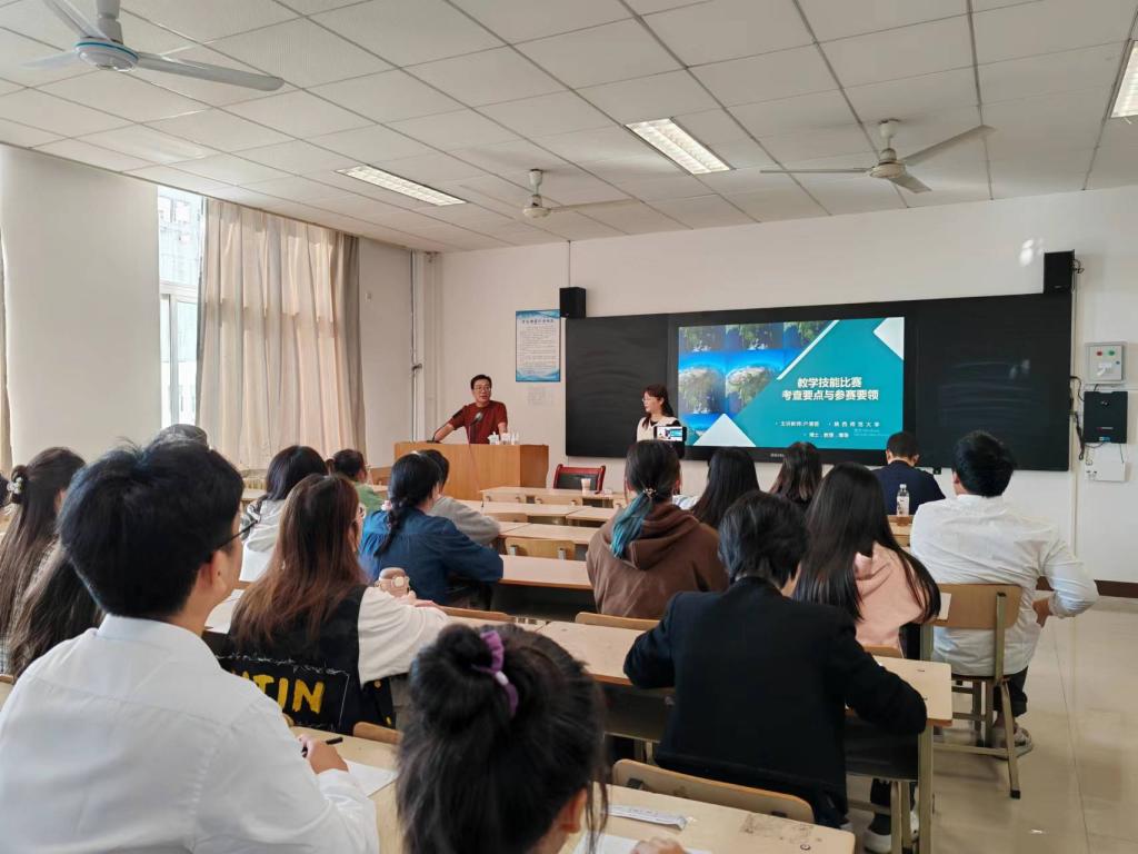 10月30日下午,环境与生命科学学院特邀陕西师范大学地理科学与旅游学院户清丽教授作题为《师范生教学技能比赛考查要点及参赛要领》的报告。环境与生命科学学院生物科学、地理科学专业负责人、第四届环生杯暨第九届田家炳杯全国师范院校师范生教学技能指导教师与报名参赛学生参加。报告会由副院长蒋缠文主持。