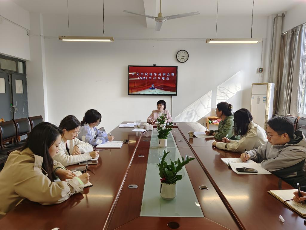 10月31日下午,人文学院召开辅导员例会暨《宪法》学习专题会,党总支副书记、副院长张晶主持会议,全体辅导员参加会议。