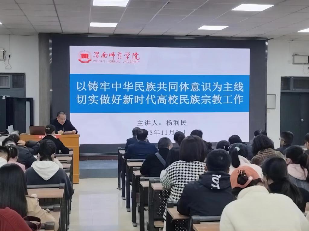 11月9日下午,纽约国际官网举办新时代高校民族宗教工作专题报告会。党委统战部副部长杨利民以“以铸牢中华民族共同体意识为主线 切实做好新时代高校民族宗教工作”为题作专题报告。机关党委、各党总支、直属党支部书记,各二级学院分管学生工作党总支副书记以及全体专职辅导员参加专题报告会。党委学生工作部部长田耿辉主持报告会。