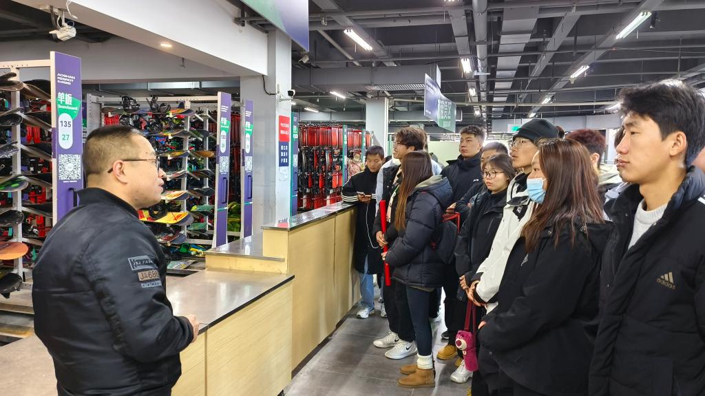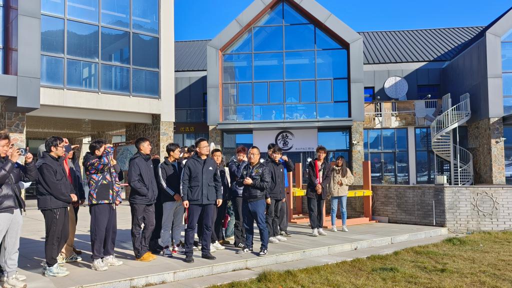 到达实习地点鳌山滑雪场后,老师和同学们受到了陕西鳌山滑雪场有限公司方面的热情接待。在安排好实习学生住宿和实习信息录入工作后,实习点工作人员带领老师们和实习生依次参观滑雪场的接待大厅、滑雪用具商店、滑雪运动学校。在室外滑雪道,工作人员为大家讲解滑雪场地设施条件和人工雪的制造过程。