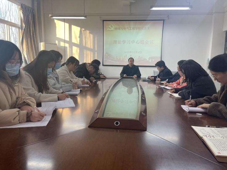 12月4日上午,物理与电气工程学院党总支召开理论学习中心组第十三次学习会议。党委副书记汪勇巡听指导,党总支书记袁卫主持会议。