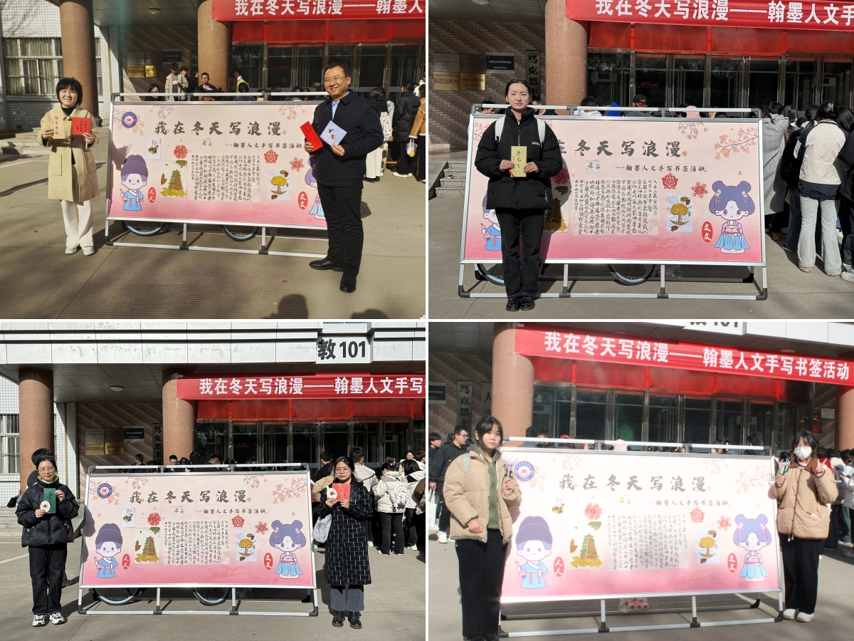 看似小小的书签,于方寸之间,窥千年风雅,品师生情谊。这份属于人文人的情怀,让广大师生在这个冬天与浪漫撞了个满怀。整场活动持续了将近两个小时,在师生们恋恋不舍中,人文学院“我在冬天写浪漫”手写书签活动圆满结束。(通讯员 周雨坤 审核人 李三岗)