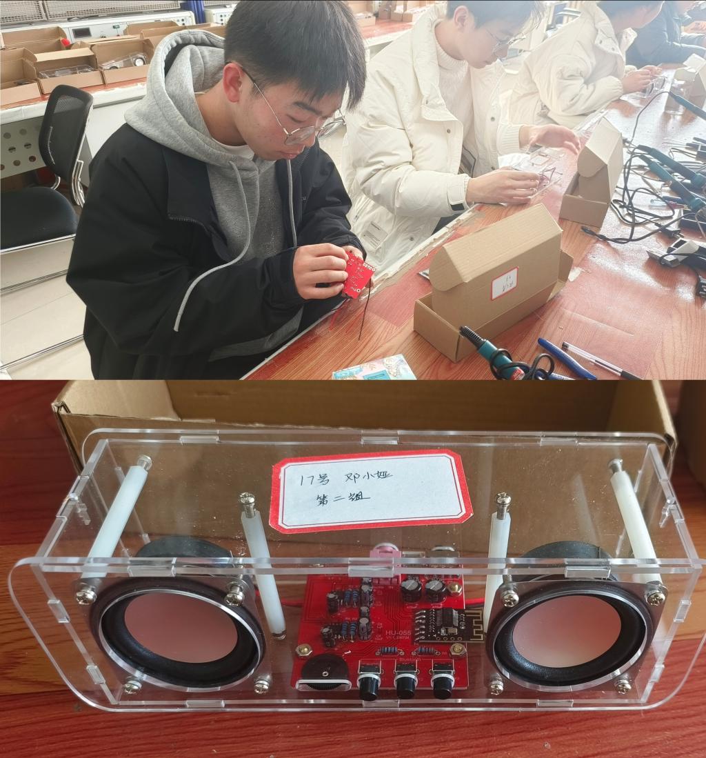 本次焊接大赛题目为定向命题《焊接蓝牙音箱》,共分为两大组先后进行,要求参赛选手在规定时间内,根据比赛时统一配发的电路原理图、元器件清单、功能等技术文件和套装资料,使用提供的设备和工具,独立完成电路板焊接及调试工作。