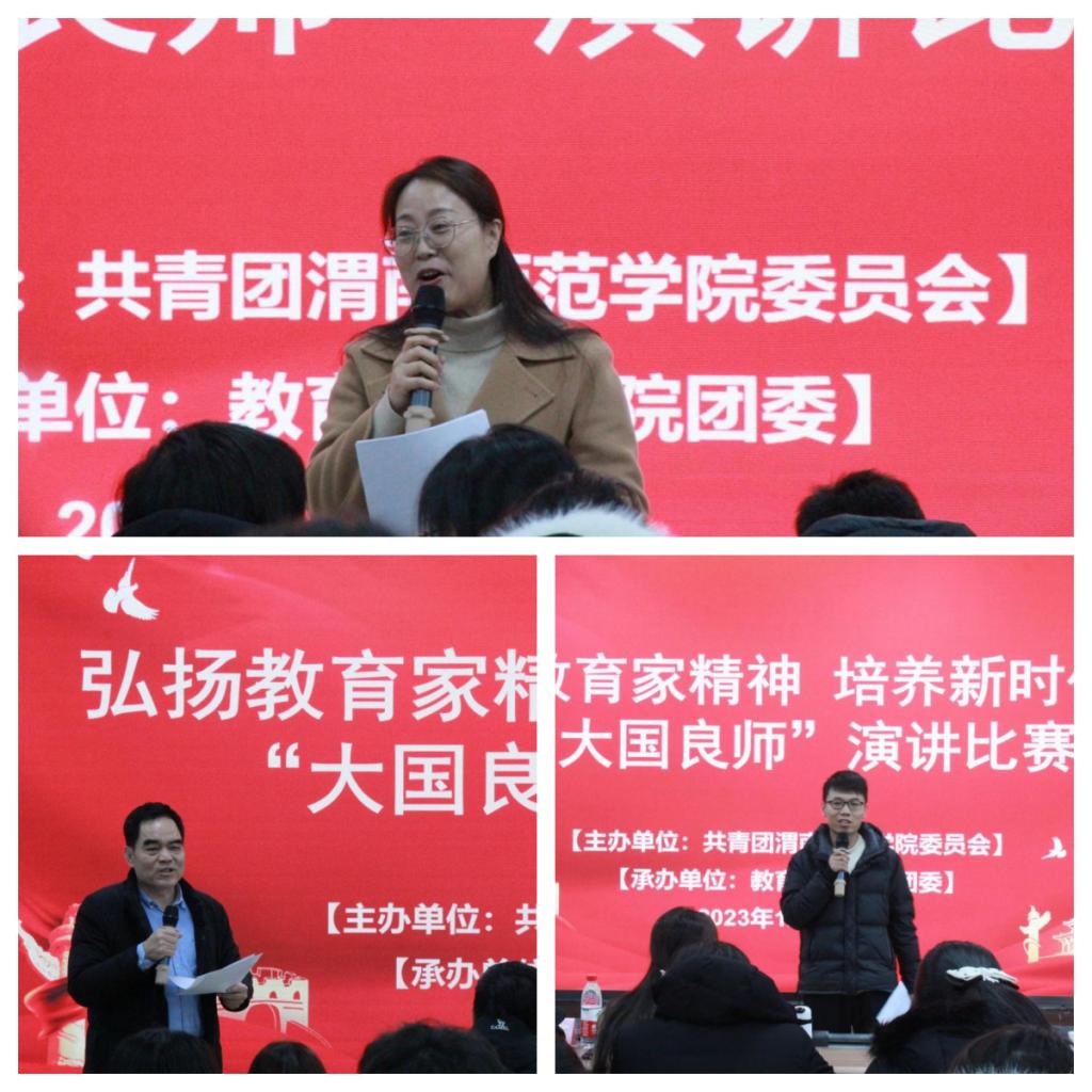 12月21日下午,由校团委主办,教育科学学院团委承办的“弘扬教育家精神,培养新时代的大国良师”演讲比赛在博识楼1101教室举行。教育科学学院教授范牡丹、人文学院副教授张始峰、教育科学学院青年教师孙少康担任比赛评委。