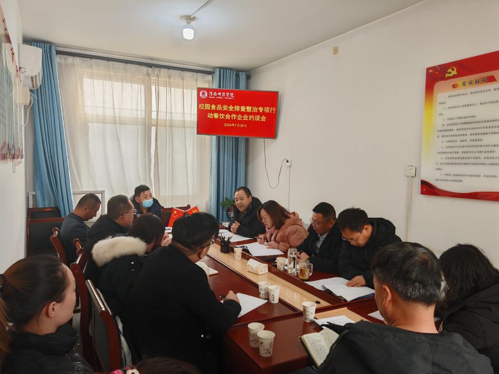 1月29日,后勤服务中心召开校园食品安全排查整治专项行动餐饮合作企业约谈会。