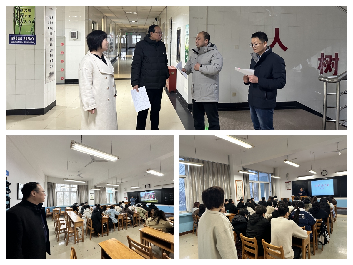 该院党总支书记李三岗,院长赵前明,党总支副书记、副院长张晶,副院长雷炳锋和全体辅导员深入教室,对新学期教学准备、教师到岗、学生到课、课堂教学、教学环境、教学服务保障等进行检查指导,并与同学们共同聆听新学期第一课。