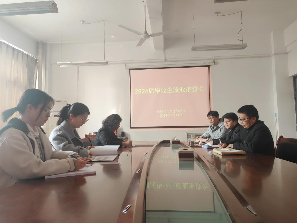 3月14日上午,物理与电气工程学院召开2024届毕业生就业工作推进会,学院党总支书记袁卫、院长张修兴、党总支副书记权轻舟、副院长郭宝会及毕业班辅导员参会。