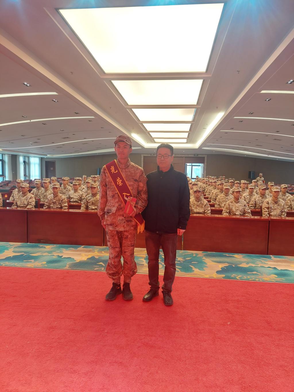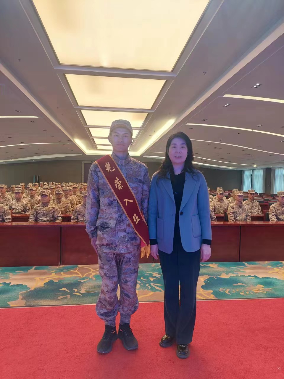 在新兵役前教育会场,役前新兵们个个精神抖擞、士气高昂。李春兰、朱颖妮同学生进行谈心交流,了解其思想状况,鼓励他们树立信心,听从指挥,刻苦训练,努力完成所有训练科目。