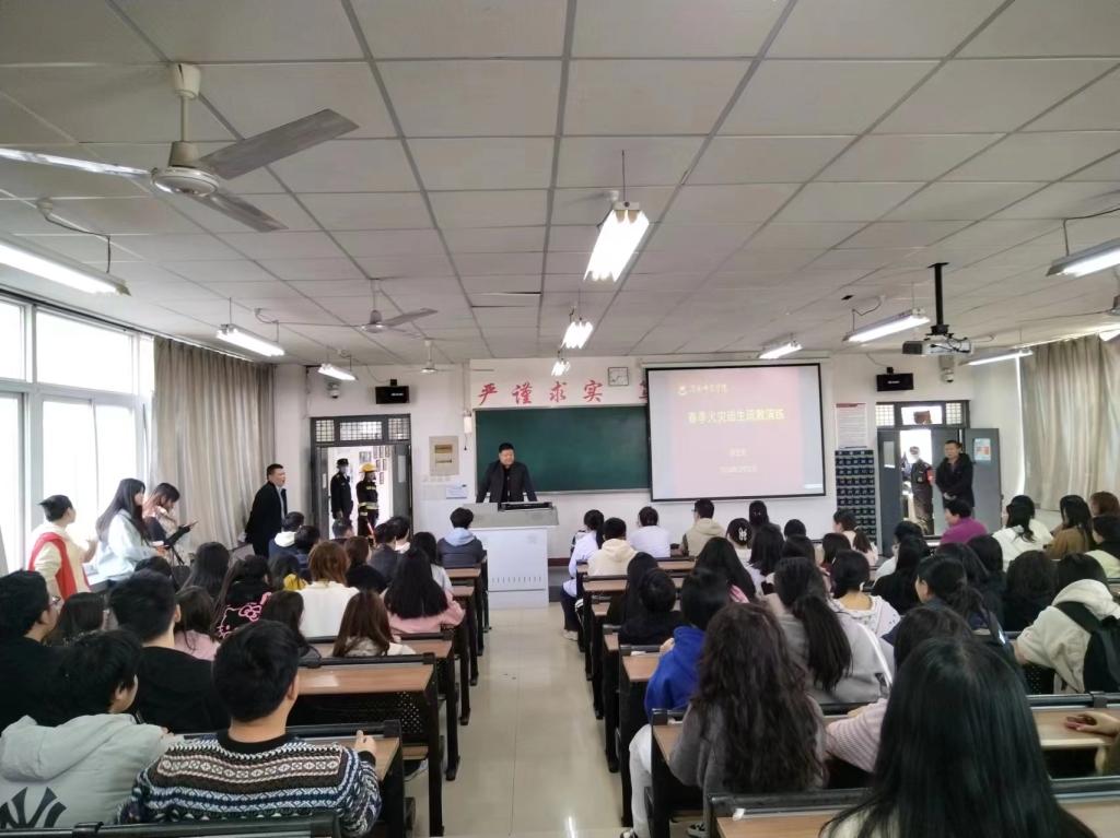 演练现场,保卫处副处长苟卫锋宣读了演练活动方案,详细讲述了身处火场时的注意事项、逃生技能、疏散安全、疏散路线和疏散集合点要求等方面内容。保卫处处长马利涛宣布“演练活动正式开始”开始后,随着模拟火灾的警报响起,上课教师告知学生“不要慌”,指挥学生按照规定路线迅速有序撤离,到达疏散地点清点人数,全员疏散仅用时3分58秒。疏散过程中,消防员和医生护士展开现场搜救工作,及时将“受伤学生”撤离到安全区域,并立即开展创伤包扎、心脏复苏等抢救工作。