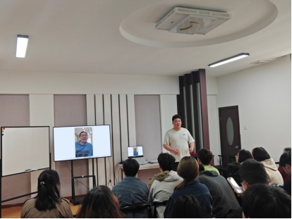李兆鑫向师生介绍项目情况