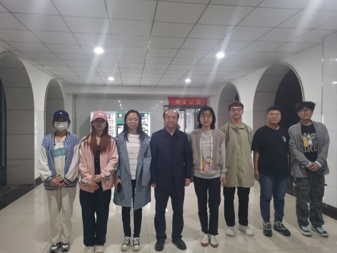 4月13日晚,为了进一步了解学生的学习生活状况,落实学生工作例会要求,经济与管理学院党总支书记李富荣深入富平校区学生宿舍进行检查指导,辅导员王晶、杨雯婕及学生干部同行。